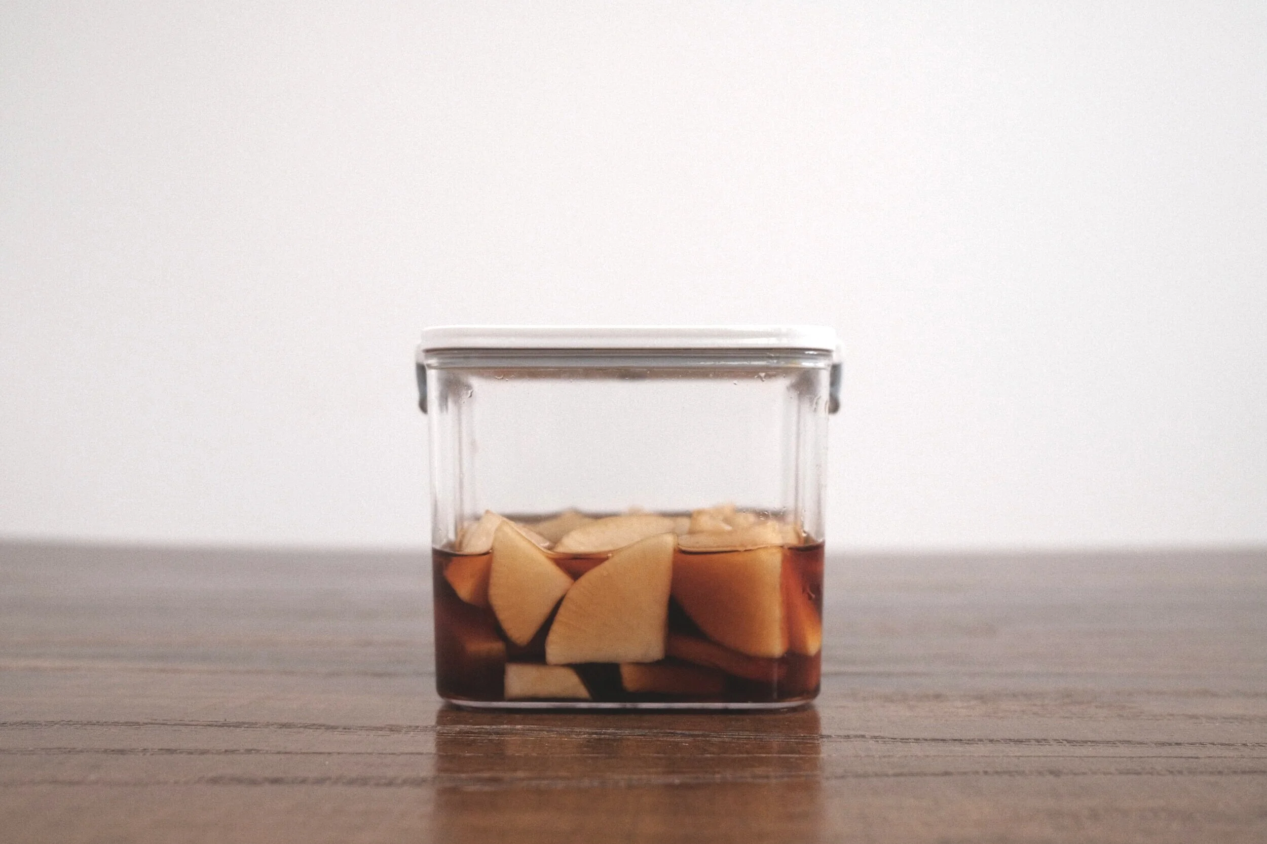 Tsukemono is also one of the food storage methods, where vegetables, seafood and fruits are pickled in salt, vinegar, and fermented rice bran bed.